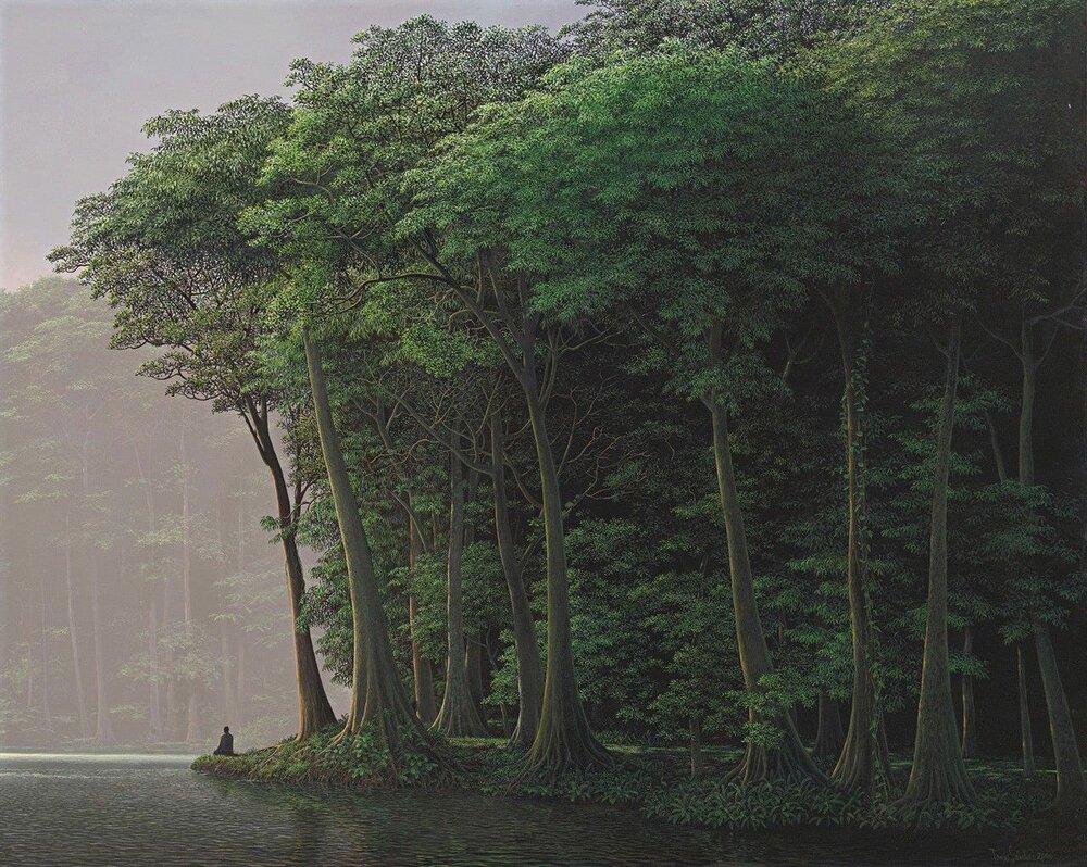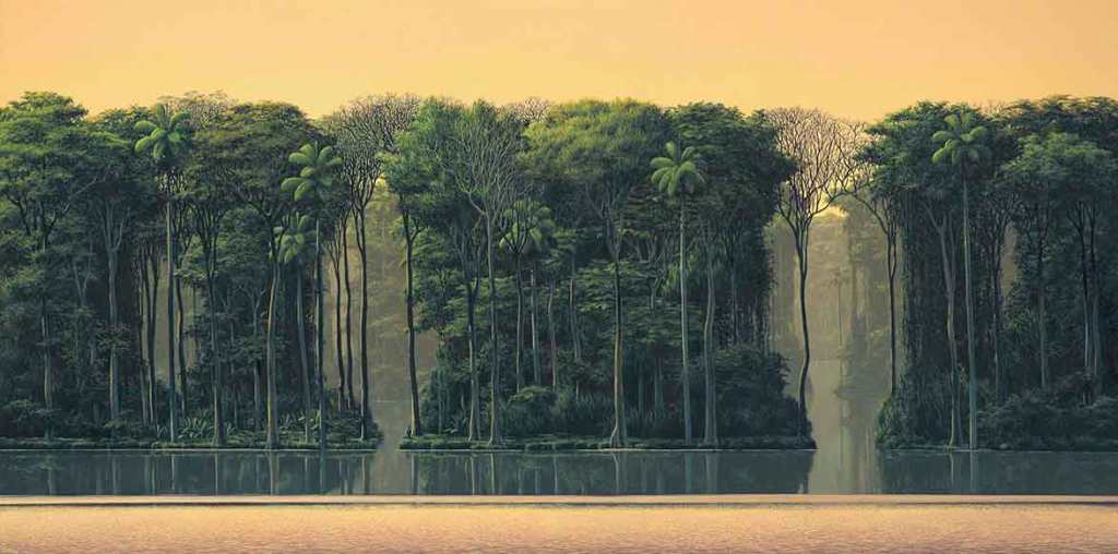 Tomás Sánchez is a Cuban artist who is best known for his deeply spiritual images of nature and serene scenes of lush vegetation that strive for perfectionism. But there is more to his work than meets the eye. Like a shimmering mirage in a desolate desert, these idyllic landscapes feel just out of our reach. And they always will be. Sánchez teases us with the promise of a thirst quenching oasis, when in fact these painted scenes no longer exist in the real world – the forests now ripped from its roots to make way for unsustainable agriculture.