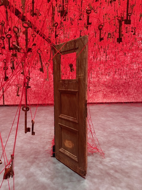 The juxtaposition of walking through brutalist, grey architecture and encountering the red threads criss-crossing and inhabiting the space is a dramatic statement. And one of the best introductions to Chiharu Shiota’s work.