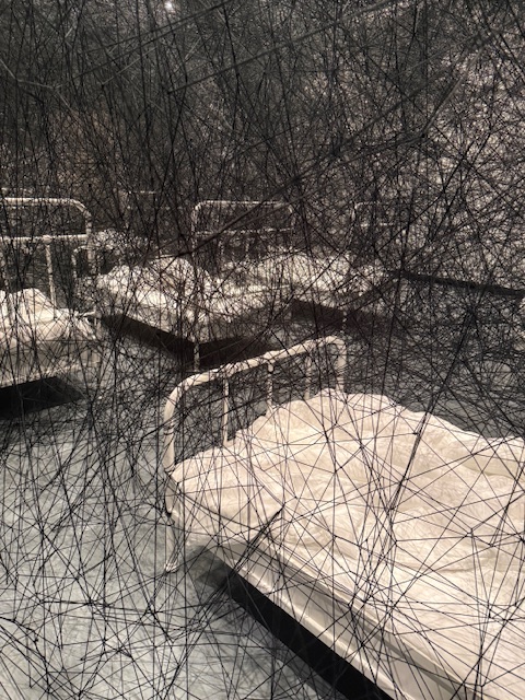 The final room I entered was covered floor-to-ceiling with interlaced black thread, leaving just enough space for a few metal beds. Another chance to add your own narrative, this room felt creepy and deadly. Like the thread was closing in on the beds. It felt intentional that the mood in this last room shifted to a darker presence. The atmosphere in all the rooms can’t be replicated, or felt through a screen – you really need to experience this in person.